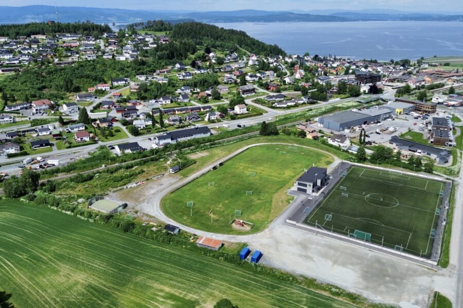 Skogn IL og Remyra stadion. I bakgrunn er Holåsen boligfelt