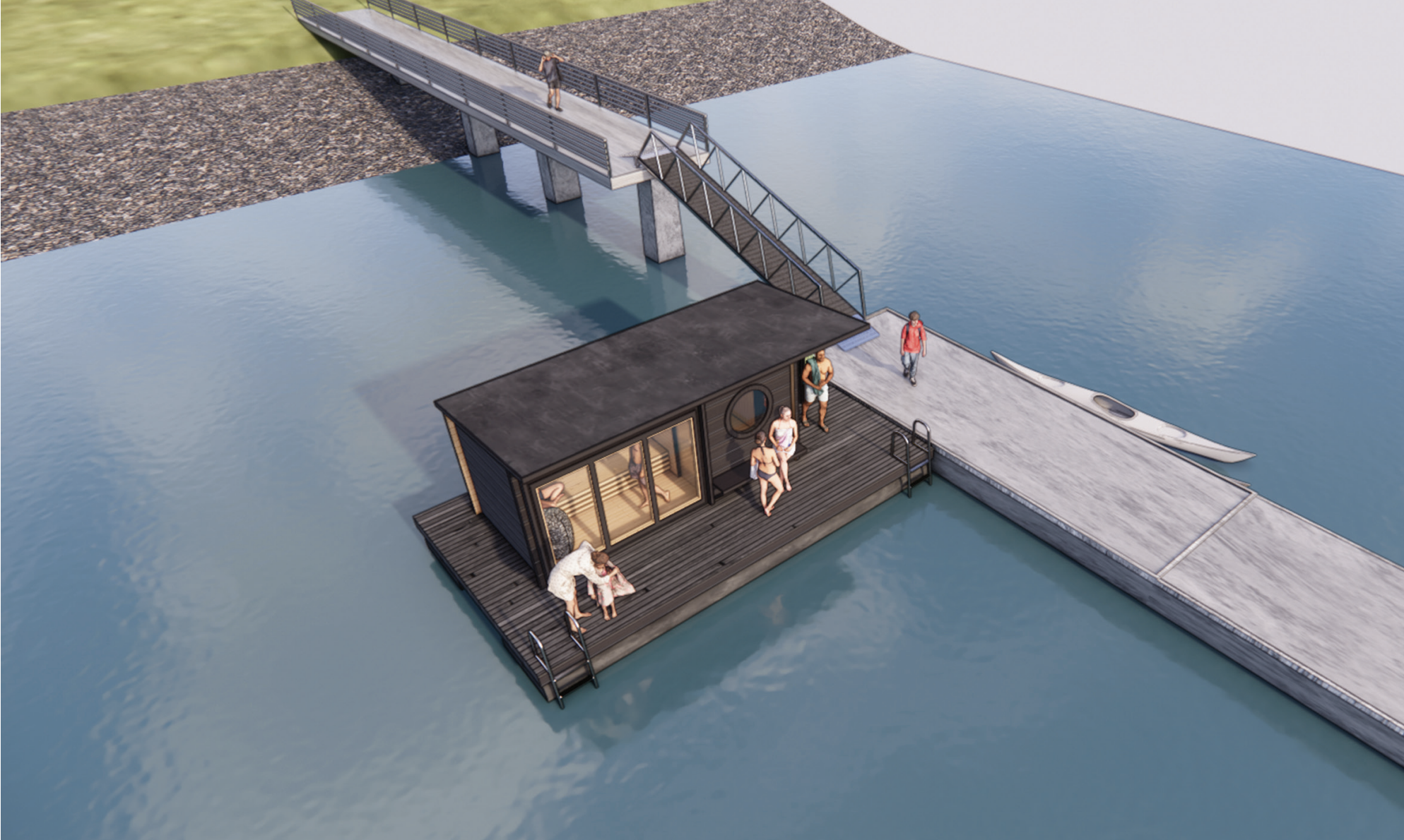 Skogn Forum tok derfor initiativ til å utforske mulighetene. Sammen med Skogn Folkehøyskole og Skogn Maritime Forening ble ideen utviklet og konkretisert, før vi gikk i dialog med Stim Sauna for å se om deres erfaring fra Sjøbadet i Levanger kunne bidra til å realisere planene lokalt.